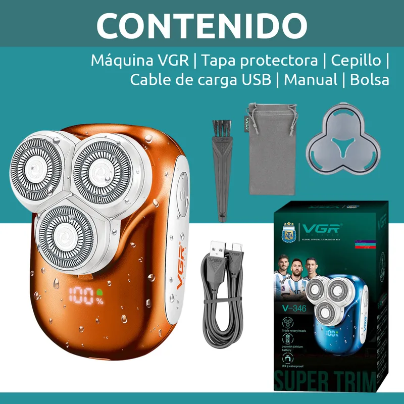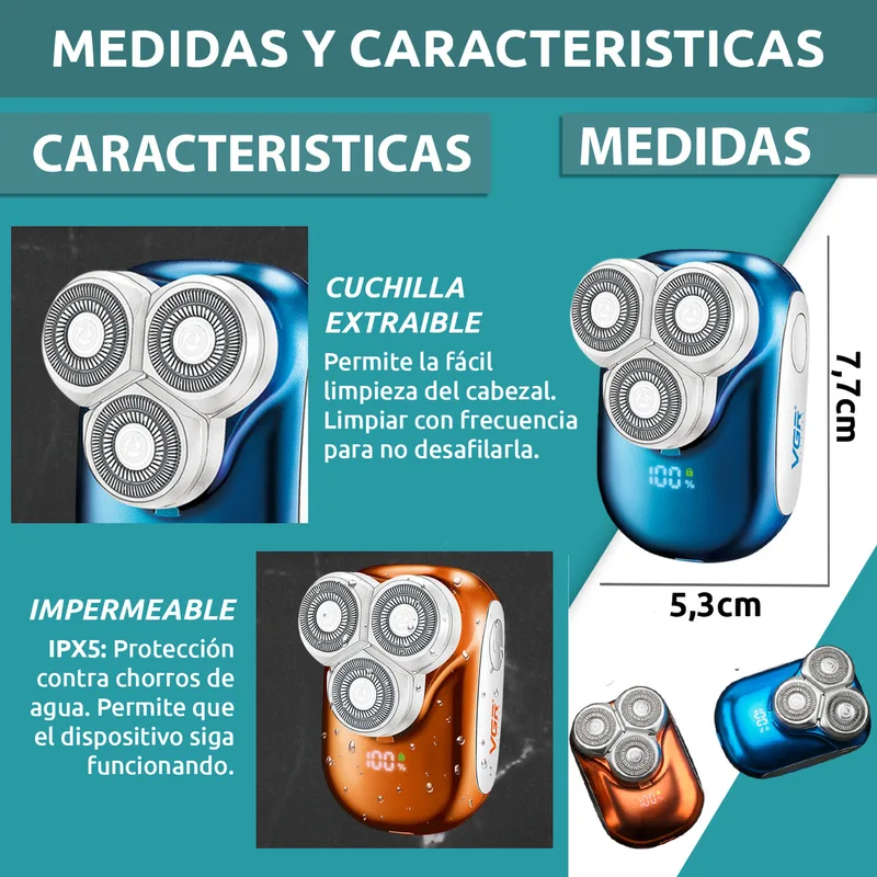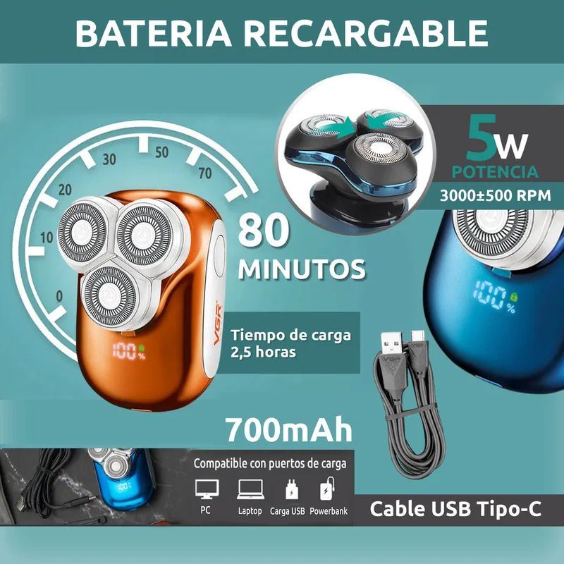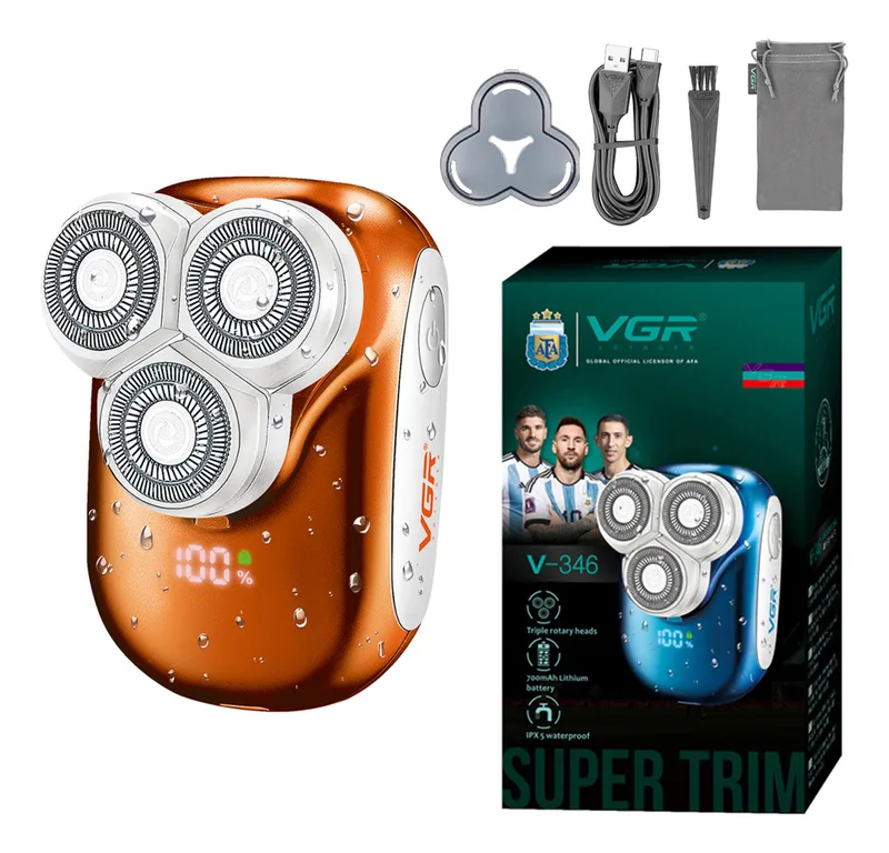מכונת גילוח חשמלית קומפקטית VGR V-346 לגברים – 3 ראשים מסתובבים + גילוח 0 מ״מ