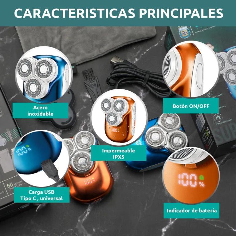 Triple cabezales flotantes 3D – שלושה ראשים שמסתובבים ומסתגלים לקווי הפנים.