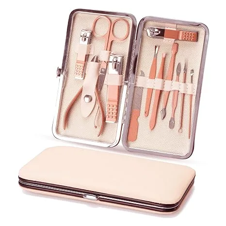 ערכת מניקור ופדיקור יוקרתית 12 חלקים – סלון טיפוח פרטי בתוך מארז