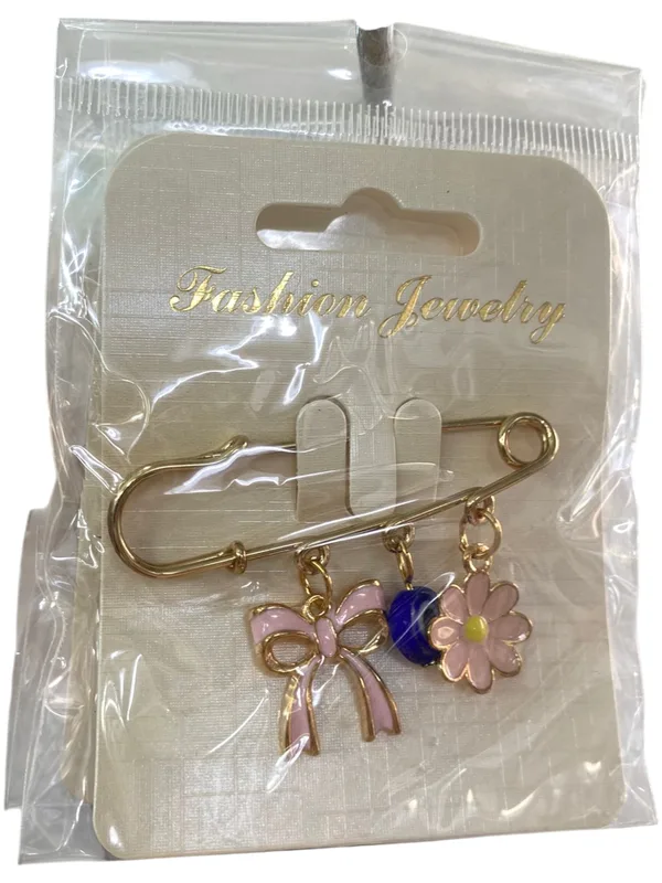 סיכת ביטחון דקורטיבית בצבע זהב, בעיצוב תכשיט מתוק במיוחד, עם תליונים: