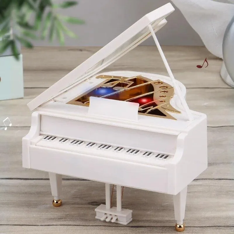 ישנם רגעים שפשוט דורשים מנגינה טובה, ותיבת הנגינה בצורת פסנתר כנף שלנו כאן כדי לספק אותם בסטייל. בעיצוב פרימיום המשלב אלגנטיות קלאסית עם טכנולוגיה מודרנית, התיבה הופכת למופע קטן של אור וצליל בכל פעם שפותחים אותה. עם גימור חלק, פרטים מוזהבים ואורות LED צבעוניים המנצנצים מתוך גוף הפסנתר, זוהי המתנה האולטימטיבית שתמיד משאירה חיוך על הפנים.