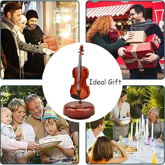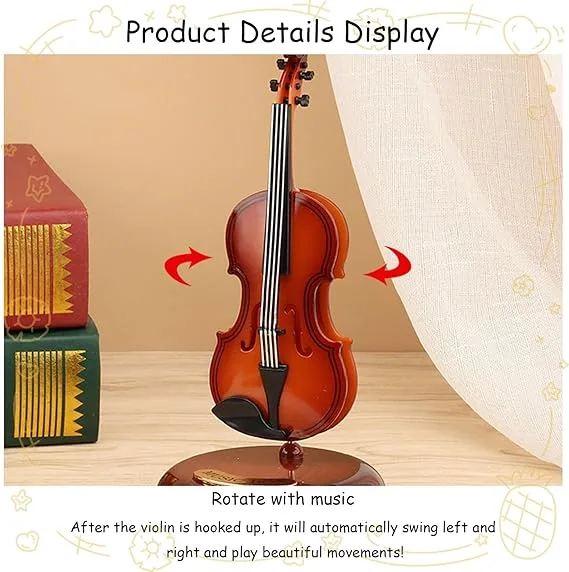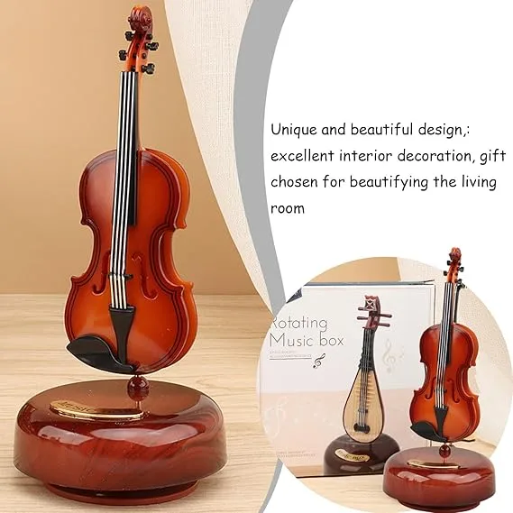 תיבת נגינה כינור קלאסי מסתובבת – עיצוב וינטאג' יוקרתי