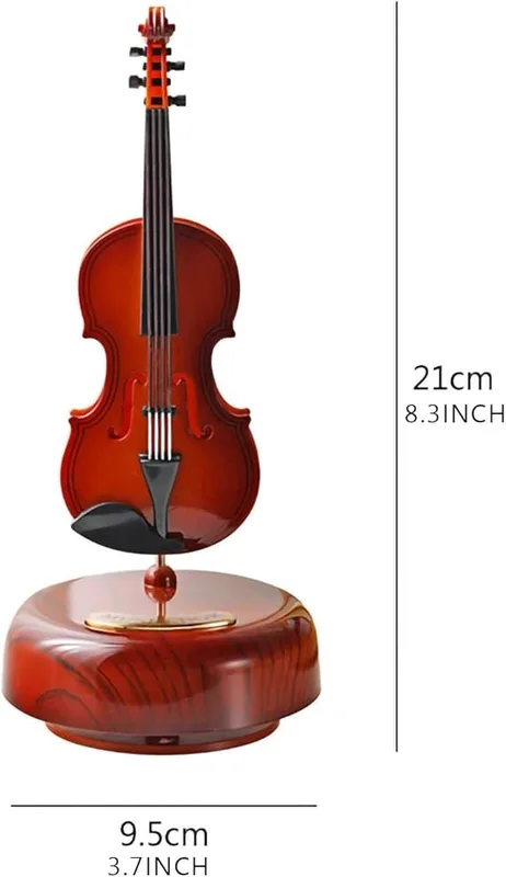 ישנם חפצים שמצליחים לעורר רגש בכל פעם מחדש, ותיבת הנגינה בצורת כינור שלנו היא בדיוק כזו. בעיצוב רטרו מרהיב ובגימור דמוי עץ טבעי, הכינור המיניאטורי מסתובב בעדינות על צירו בזמן שהמנגינה מתנגנת, ויוצר מופע קטן ומרגיע של צליל ותנועה. זהו פריט דקורטיבי בעל נוכחות שמעניק טאץ' אלגנטי לסלון, לחדר השינה או למשרד.