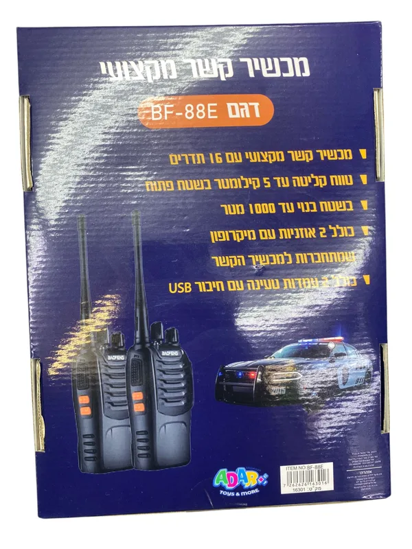 זוג מכשירי קשר (ווקי טוקי) מקצועיים Baofeng BF-88E – טווח של עד 5 ק"מ