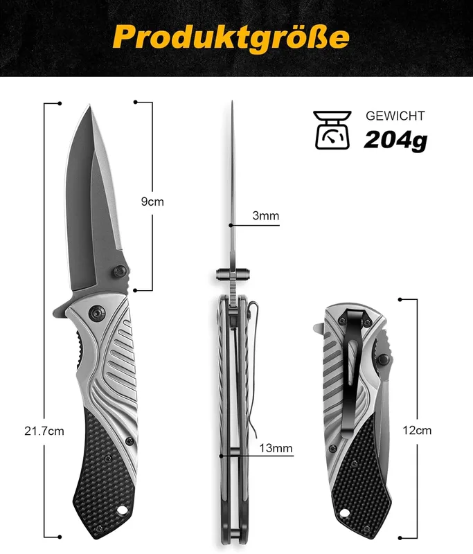 4. ורסטיליות ועיצוב טקטי: עם שלושה צבעים שונים, אתה יכול להתאים את הסכין לציוד האישי שלך. הקליפס העמוק מוודא שהסכין תשב נמוך בכיס, מוגנת וזמינה לשליפה מהירה ברגע שתזדקק לה.